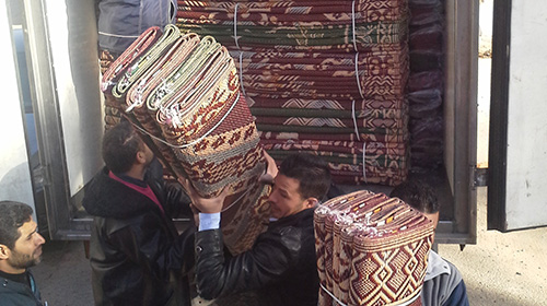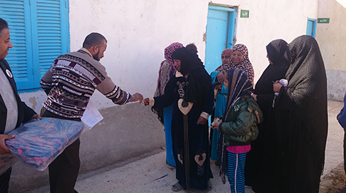 وتتمثل في مجموعة من موظفي الجمعية يقومون بتوزيع البطاطين والمواد الغذائية وملابس الأطفال